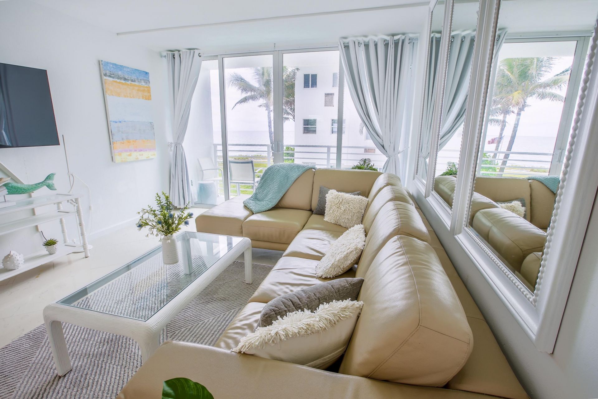 Live the dream in your oceanfront and Intracoastal front condo in a 3 story boutique building on the exclusive Hillsboro Beach. Ocean views from the living and bedroom. Enjoy sunrise by the ocean and sunset on the intracoastal with a beautifully furnished common room, pool, and dockage. All concrete work and a new roof just completed and paid for. Building is like new with all new railings and paint. Owner is motivated. Cash only Co-op with a land lease expiring in 2056. Walk for miles on this amazing private beach! There is no public access to the beach so it is for owners only! Enjoy the small building feel of only 21 part time residents.