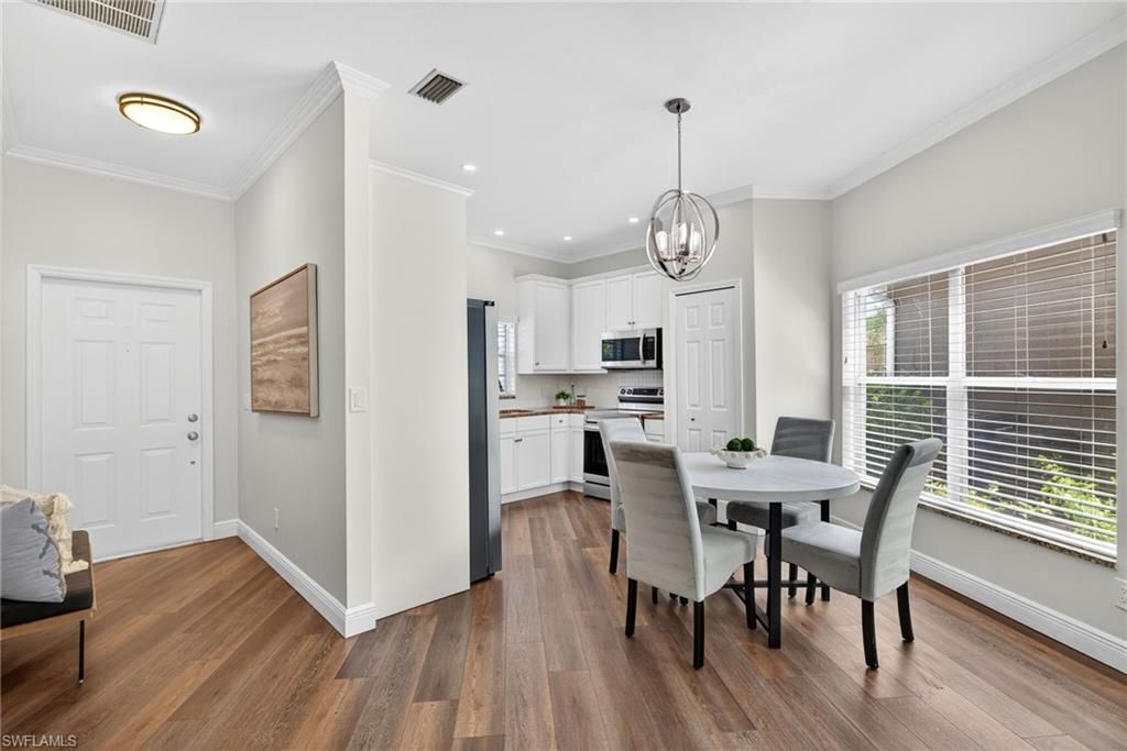 Welcome to The Blue Château, a beautifully updated and meticulously maintained home in the gated community of Island Club at Corkscrew in the heart of Estero. Tucked away on a private cul-de-sac and backing to a peaceful park-like greenspace, this charming residence offers the perfect blend of privacy, natural beauty, and everyday convenience. With lovely curb appeal, a 2-car garage, and a warm, inviting entry, this home makes a wonderful first impression and only gets better from there. Inside, this mint-condition home is filled with natural light thanks to its desirable south-facing and western exposure, creating a bright, elegant, and welcoming atmosphere throughout. The flowing floor plan is ideal for everyday living and entertaining, with a beautiful dining area, updated light fixtures and fans throughout, and a tranquil west-facing backyard that offers a peaceful setting to relax and enjoy Florida sunsets. A lovely patio overlooking the courtyard adds even more charm and easy outdoor enjoyment. Thoughtful updates give buyers real peace of mind, including all new flooring throughout, updated paint, a new roof in 2022, updated HVAC, hot water heater, electric panel, new Samsung appliances, LG refrigerator, cabinetry, farmhouse sink, and included washer and dryer. This is the kind of home buyers love to find because the work has already been done. It feels fresh, polished, exceptionally cared for, and truly move-in ready with no flooding ever reported. In other words, this is not a project house or a future money pit, but a smart and comfortable choice where you can simply move in and enjoy. Island Club at Corkscrew offers an amenity-rich lifestyle in a gated setting designed for comfort, connection, and recreation. Residents enjoy a clubhouse, pool and spa, pickleball, tennis, bocce, shuffleboard, library, fitness center, community gathering spaces, and scenic views overlooking a beautiful 23-acre lake. The location is outstanding, just minutes to I-75, RSW International Airport, FGCU, shopping, dining, and popular local spots, making it ideal for families starting out, young professionals, retirees, seasonal residents, or anyone wanting a well-cared-for home in an amazing Estero location. Quarterly HOA fees are $820, and the community allows 4 leases per year with a 90-day minimum, offering flexibility for owners and investors alike.