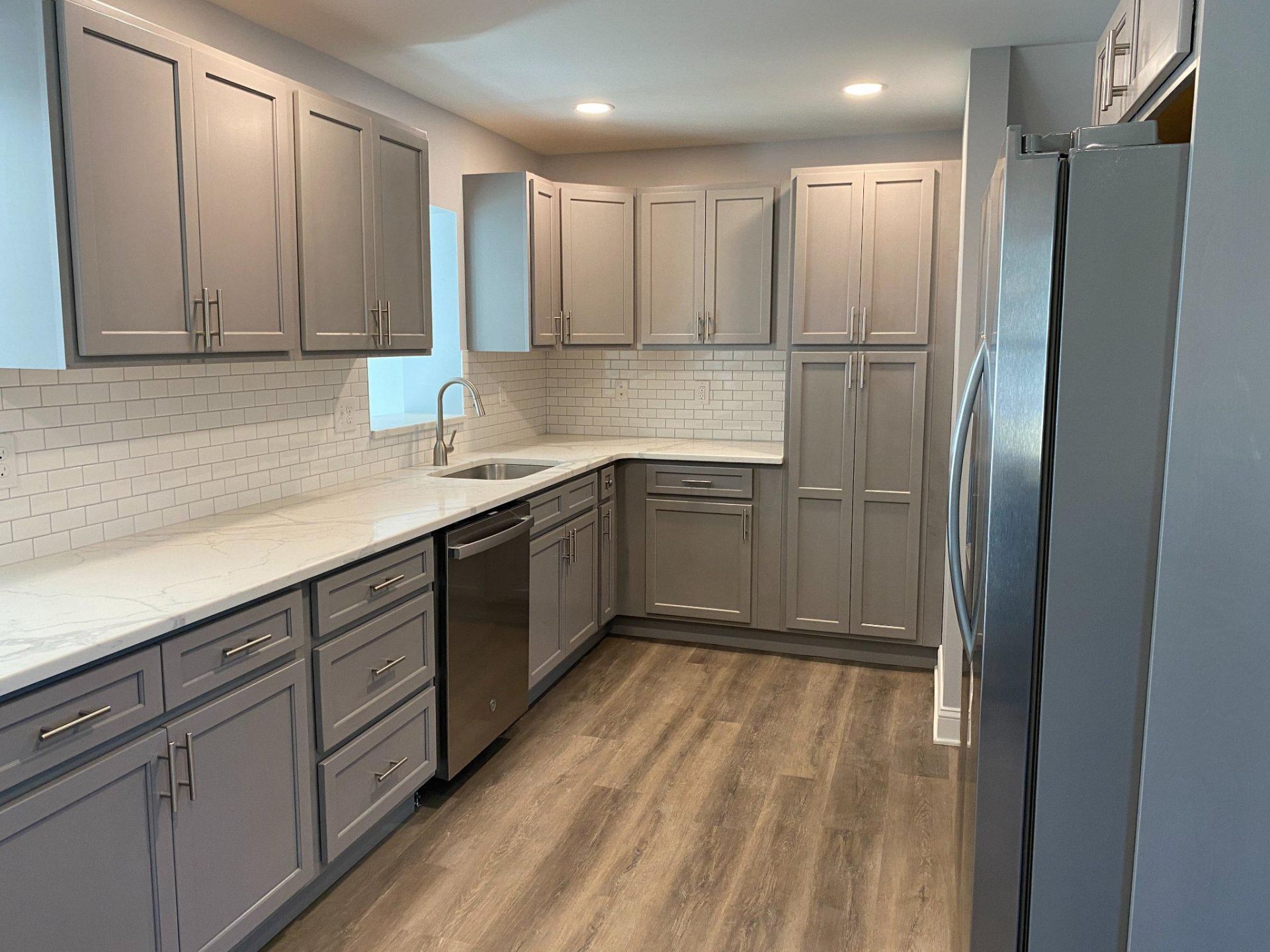 This Beautiful home was totally remodeled. Everything was new as of 2024 including new windows and new hard surface floors throughout the home. A gorgeous kitchen featuring lots of beautiful quartz counter space, plenty of cabinets and stainless-steel appliances including double door fridge. The kitchen is surrounded by access to a spacious dining room (bathed in natural light with view of backyard), living room and entrance to finished basement. Main floor also includes two bedrooms and large bathroom with glass enclosed shower. On the second floor you will find a very large bedroom with two huge closets (both with access to extra attic storage space) and a full bathroom. The main floor and second floor both feature vinyl plank wood style flooring. The basement has an additional bedroom and large, beautiful bathroom with glass enclosed shower, separate laundry room and additional finished living space (ideal for media or family space). Finished basement space has all tile floor. Also found in the basement is extra storage space. Good sized fenced in yard with large shed. Two car garage. The home has a shared driveway. Pets are allowed with monthly pet fee with owner approval. (Sorry, no cats). Walking distance to train. Tenant pays for trash, water, sewer, electric and responsible for lawn care. Available for move in early June.