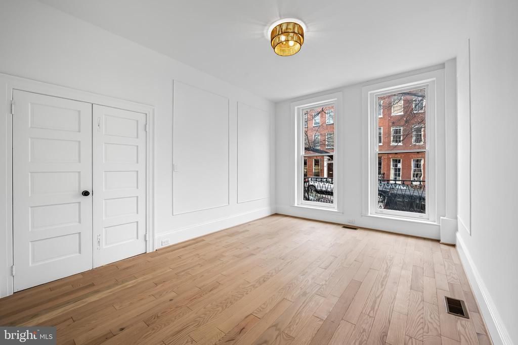 High end renovated first floor apartment in the heart of Bolton Hill with a flexible layout that can function as a one bedroom plus office or den, or as a two bedroom, depending on your needs specific needs. This stylish space features a gourmet kitchen, stackable washer and dryer, luxury bath, and direct access to a private patio garden for rare indoor outdoor living in the city. Perfect for an artist, remote worker, MICA student, Johns Hopkins employee, or University of Maryland professional seeking a refined live work space in Baltimore. Convenient to Penn Station, subway, light rail, Hopkins shuttle, parks, cafes, the Lyric, and the Symphony. Easy permitted street parking in front. Minimum 1 year lease required. Minimum 650 credit score and income of 3x monthly rent required.