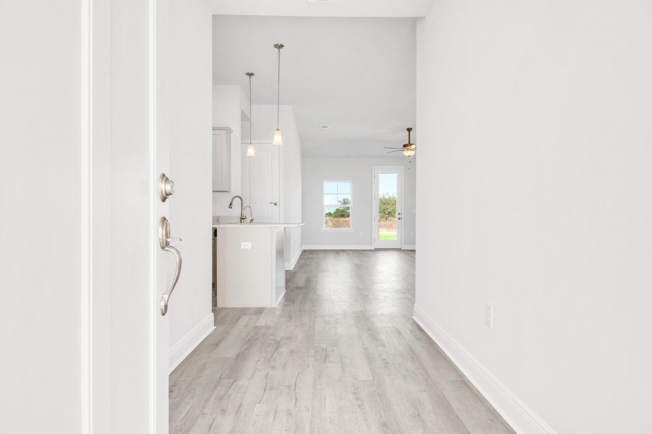 Located just a 20-minute drive to the white-sand beaches of South Walton, this Craftsman-style home blends coastal convenience with modern comfort. Offering 3 bedrooms and 2 baths, the home features Hardiboard siding with a brick skirt, 9' ceilings throughout, and elegant 10' tray ceilings in the owner's suite. Quartz countertops highlight the kitchen and baths, complemented by sleek black faucets and hardware. Durable CoreTec Pro Plus luxury vinyl plank flooring flows throughout, while the oversized owner's suite with a large walk-in closet provides a relaxing retreat. Estimated completion April/May 2026. Photos are of a similar home.