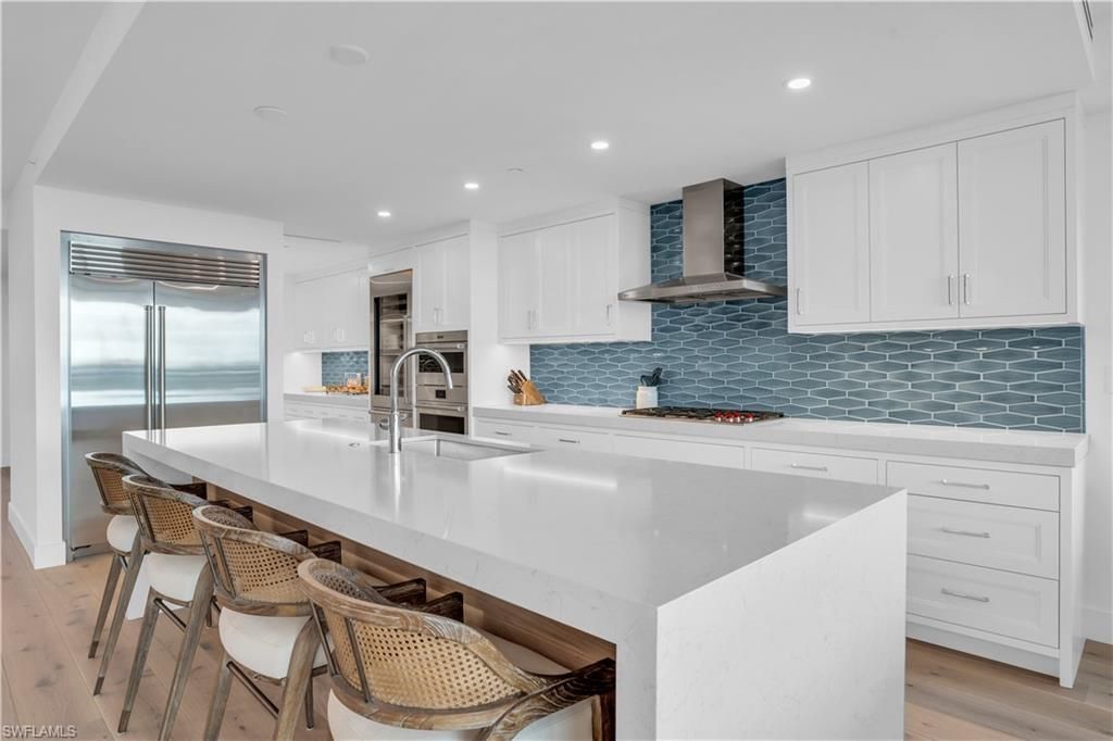 Welcome to the uber luxurious Kalea Bay! This gorgeous custom designed, never been lived in condo, features walls of windows and stunning views, allowing you to soak in the Gulf’s beauty at every turn. This spacious condo includes a gourmet kitchen with top of the line appliances, a wine cooler, an expansive island, and a butler’s pantry. After preparing a meal, unwind on your lanai as the sun goes down. With 4 bedrooms and 4 baths, including a generous owners suite with a large walk-in closet, this home is the epitome of coastal living. Kalea Bay provides incredible one-of-a-kind amenities you cannot get anywhere else in Naples, including a rooftop pool, outdoor and indoor gym, an open-air poolside bar, multiple on-site dining locations, tennis and pickleball courts, and a stat of the art wellness center with a spa and salon. All of this plus a perfect location just minutes away from renowned shopping, dining, and entertainment of Naples!