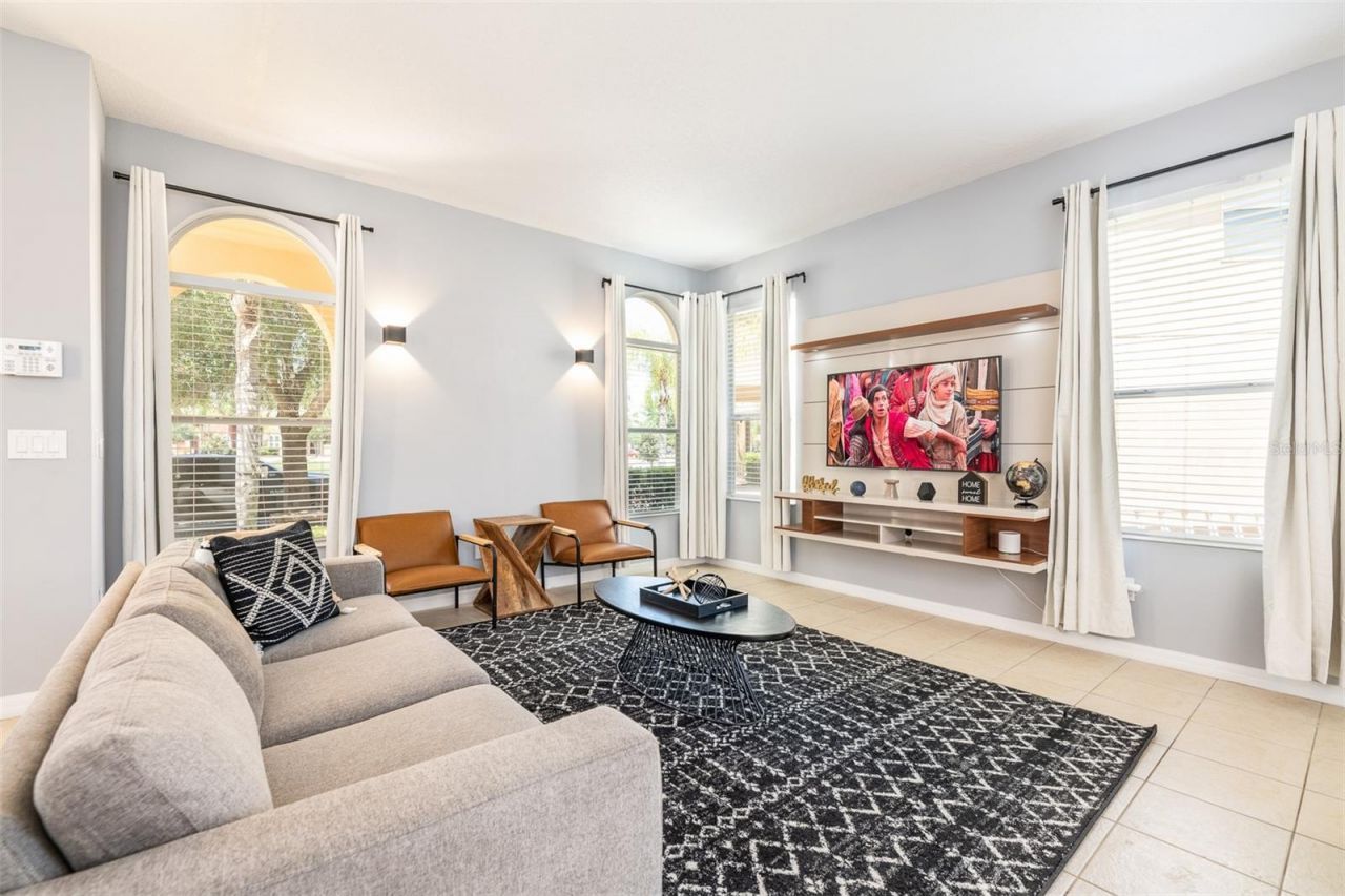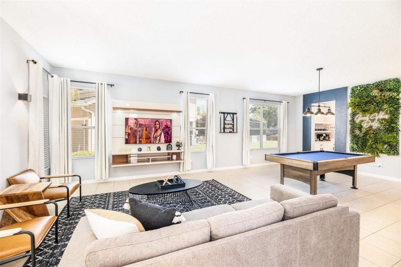FULLY FURNISHED & TURN-KEY!! Welcome to this beautifully maintained 6-bedroom, 5.5-bathroom home located in the sought-after gated community of Bellavida. Designed for both comfort and functionality, this spacious property is ideal as a primary residence, vacation home, or income-producing short-term rental. Upon entry, you're greeted by a bright and inviting living area featuring a pool table, perfect for entertaining. The home opens into a seamless open-concept layout with a well-appointed kitchen, dining area, and expansive family room equipped with a large projector, creating the ultimate gathering space. A dedicated workspace is also included for added flexibility. Step outside through sliding glass doors to a covered lanai and private pool/spa, offering a relaxing outdoor retreat to enjoy Florida living year-round. Upstairs, the home features six well-designed bedrooms, including two primary suites with king beds and en-suite bathrooms featuring double vanities, soaking tubs, and separate showers. Two additional en-suite bedrooms (one queen, one twin) provide added privacy, while a Jack-and-Jill bathroom connects two more bedrooms (bunk room and queen), making this layout ideal for hosting larger groups. Additional highlights include an EV charger in the garage and a low-maintenance lifestyle with HOA dues covering basic internet and cable, lawn care, trash valet, and access to community amenities. Recent upgrades include vinyl flooring throughout the second floor (no carpet in the entire home), an updated kitchen with quartz countertops, a pool heater installed in 2025, and downstairs AC unit replaced in 2022. Schedule your private showing TODAY and make this beautiful home your turn-key dream!