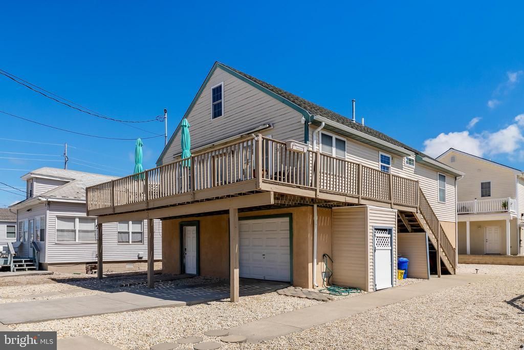 Charming 3-bedroom, 1-bath home in West Wildwood that offers both comfort and potential for its next owners. The open and airy living area showcases beautiful bamboo flooring and flows seamlessly into a fully equipped kitchen and a spacious dining area. The exterior features a expansive front deck—an ideal setting to enjoy evening sunsets, summer dining, or simply relaxing with family and friends. The back of the house includes three generously sized bedrooms, a full hall bathroom, and a convenient laundry closet. On the ground level, you’ll find exceptional versatility: driveway, a two-car garage with ample space for vehicles, boats, and beach gear and a separate area currently utilized as lounge space with seating and a game area. Additional highlights include an outdoor shower and a large backyard.