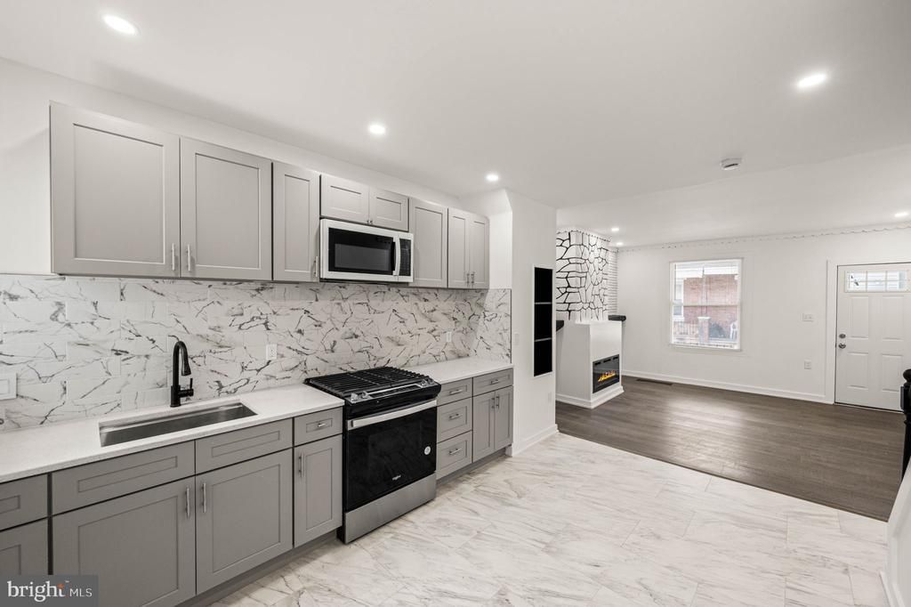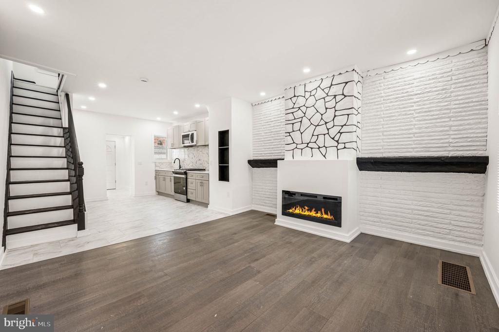Welcome to 2103 S Daggett Street, a full custom renovation in Southwest Philly where every detail is brand new. This turn-key home offers total peace of mind with a new HVAC system, new energy-efficient windows, and updated plumbing and electrical throughout. The main level features an open-concept living room with hardwood floors, custom molding, and a modern electric fireplace flanked by beautiful built-in shelving. The designer kitchen is equipped with grey shaker cabinets, quartz countertops, and ceramic tile flooring. For added convenience, the first floor includes a dedicated laundry room and a private powder room. The second floor offers two spacious bedrooms and a full bathroom featuring custom ceramic tile work. The living space continues in the fully finished basement, which includes another full ceramic tile bathroom and a versatile layout perfect for a third bedroom, home office, or gym. Located with easy access to University City, local shopping, and public transportation, this home combines high-end custom finishes with functional modern upgrades. Schedule your showing today to see this complete transformation. Brand new roof, brand new rear siding! Everything is new!
