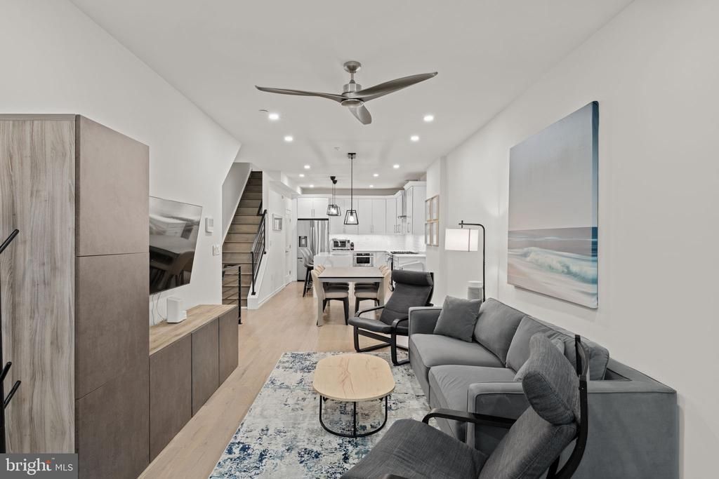 Convenience and comfort at Innovator Village! Conveniently located for a quick commute to major business hubs and hospitals in either Center City or University City including HUP, CHOP, UPenn, Drexel, etc. and close to area amenities like Breezy’s Deli, Porco’s, Bagels & Co, Dock Street Brewery, Tuck Barre & Yoga, Aldi, CVS, and more! Comfortable low maintenance living in a pet-friendly, gated community with upgraded finishes throughout and 6 years Tax Abatement remaining! The main living level has hardwood floors throughout an open floor plan for living, dining, and kitchen space, as well as an entry area for shoes, coats, AND a coveted main floor half bath upgrade. The kitchen features white shaker cabinets, Calacatta backsplash, large island with a Calacatta quartz waterfall edge counter and seating, and stainless steel appliances. The primary bedroom suite has its own bathroom with tiled walk in shower and closet outfitted with built in organizers. The remaining two bedrooms are on a separate level and each have their own closets with organizer systems, and one of the bedrooms has direct access to the hall bath, also with tiled walk in shower. Also on this level are the laundry and utility closet and a separate linen closet. All 3 bedrooms offer superior privacy as they do not share adjoining walls with one another - a nice feature especially for those with un-aligned sleep schedules. There is also parking lot within the community that offers monthly paid parking (subject to availability). If you are ready to move in with just your suitcase, all furnishings are available as a package for an additional fee.