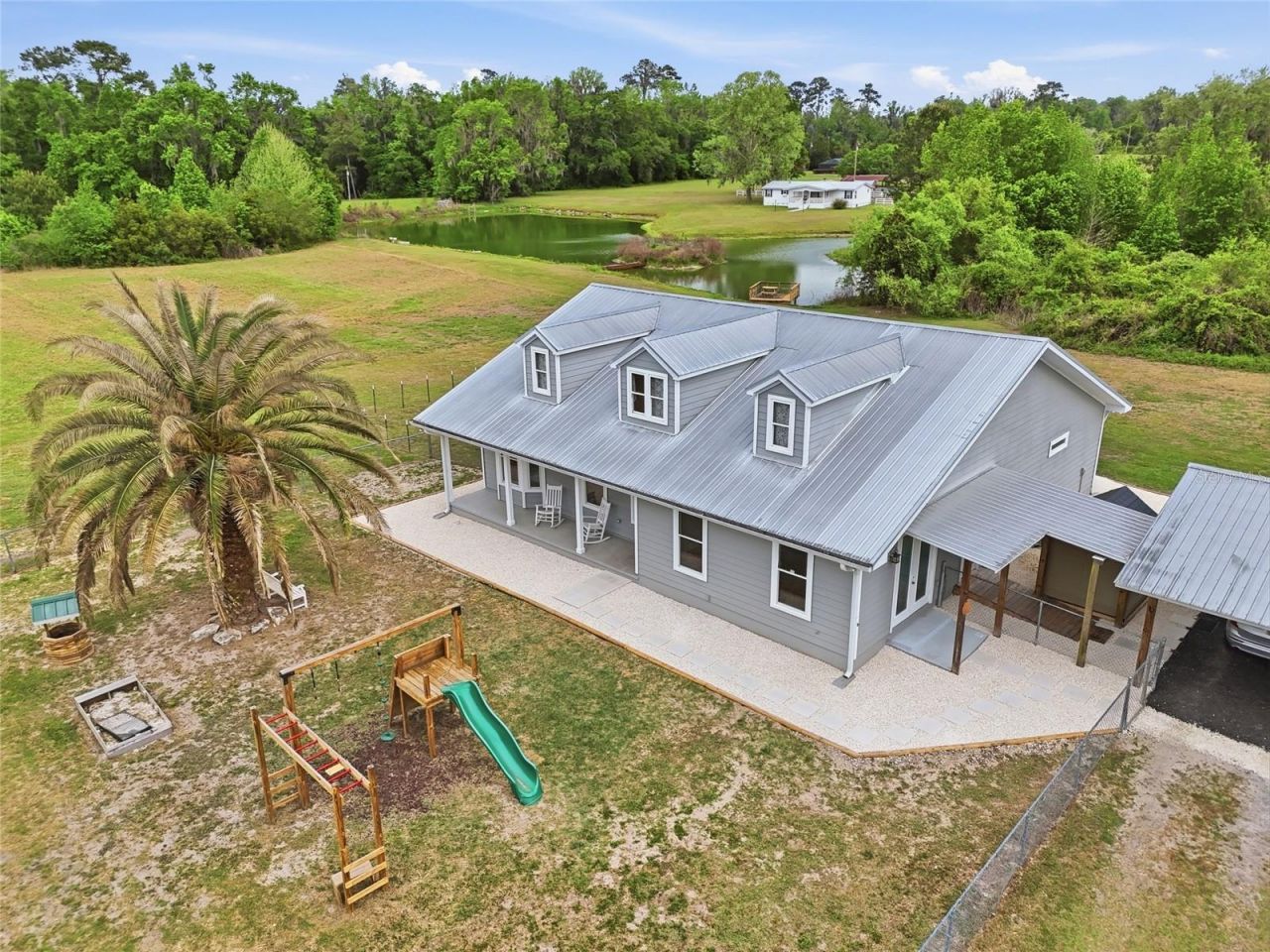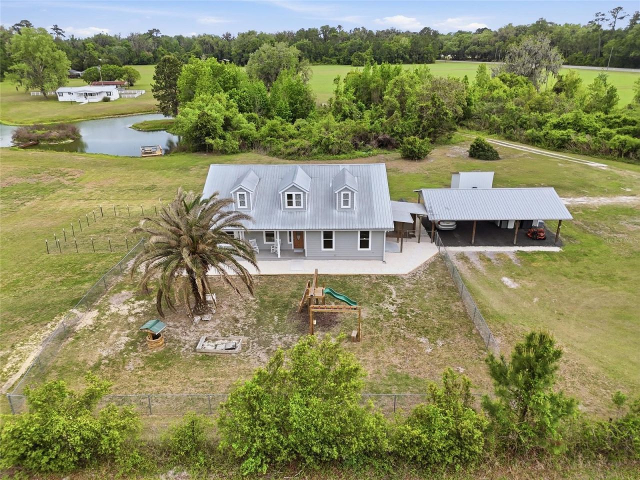 Welcome to a rare opportunity to own your own slice paradise, gracefully set on 5.7 picturesque acres with a fully stocked pond. This thoughtfully designed 3-bedroom, 2-bathroom residence offers more than 2,000 square feet of heated and cooled living space, and is sure to impress. From the moment you arrive, you'll be drawn in by the home's inviting presence - complete with a newly laid rock landscaping bed, a fenced front yard ideal for pets or little ones at play, a spacious 3-car covered carport with ample storage, and a cozy front porch just waiting for a pair of rocking chairs and a slow morning coffee. Step inside to discover a bright and airy split floor plan featuring soaring ceilings and no carpet throughout, offering both style and ease of maintenance. The heart of the home unfolds into an open-concept kitchen, living, and dining space - perfectly suited for gathering with family and friends. Just off to the right, a generously sized bonus room provides endless possibilities, whether you envision a second living area, fourth bedroom, home office, or a dedicated homeschool retreat. The primary suite is a peaceful sanctuary of its own, offering private access to the back deck, serene views of the backyard and pond, and an en-suite bath complete with a walk-in shower, jetted soaking tub, and a spacious walk-in closet. On the opposite side of the home, two oversized guest bedrooms and a beautifully updated guest bath with a walk-in tile shower provide comfort and privacy for family or visitors alike. A large mudroom with washer and dryer adds both convenience and practicality to everyday living. Out back, the true beauty of this property unfolds. An expansive wood deck overlooks the gently glistening pond, creating the perfect backdrop for quiet mornings, lively evenings, or simply soaking in the peaceful rhythm of country living. Grab your fishing pole and kayak, and enjoy reeling in bass out of the fully stocked pond. With its generous acreage, versatile layout, and inviting outdoor spaces, this property offers a rare opportunity to embrace a slower, more intentional way of life - without sacrificing proximity to town. Offered at $475,000, this is more than just a home - it's a place to put down roots and make lasting memories. Schedule your private showing today and come experience the charm for yourself.
