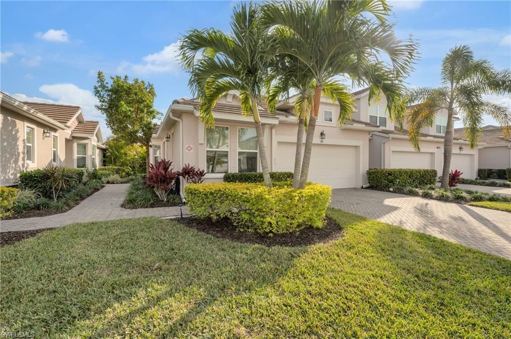 Southern exposure end unit filled with natural light and ideally located in the heart of the vibrant Bayshore Arts District. This move in ready residence offers a rare blend of comfort and convenience, featuring a two car garage, private patio, modern lighting, plantation shutters, and a spacious kitchen with a large island perfect for gathering and entertaining. Enjoy true lock and leave living with dues covering practically everything except electric, allowing for a low maintenance, hands free lifestyle. The thoughtfully designed amenities area captures stunning nightly sunsets, where you can swim in the resort style pool, unwind in the oversized spa, relax by the firepit, and enjoy the evening glow alongside friendly neighbors. Additional community features include a fitness center, grilling area, dog park, and scenic sidewalks winding around the lake and throughout the neighborhood. Just moments away, stroll to Naples Bay for sunsets over the Gulf and Port Royal, walk to the Naples Botanical Garden and Sugden Park, and enjoy local breweries, coffee shops, waterfront experiences, Downtown Naples, and pristine Gulf beaches only minutes away.