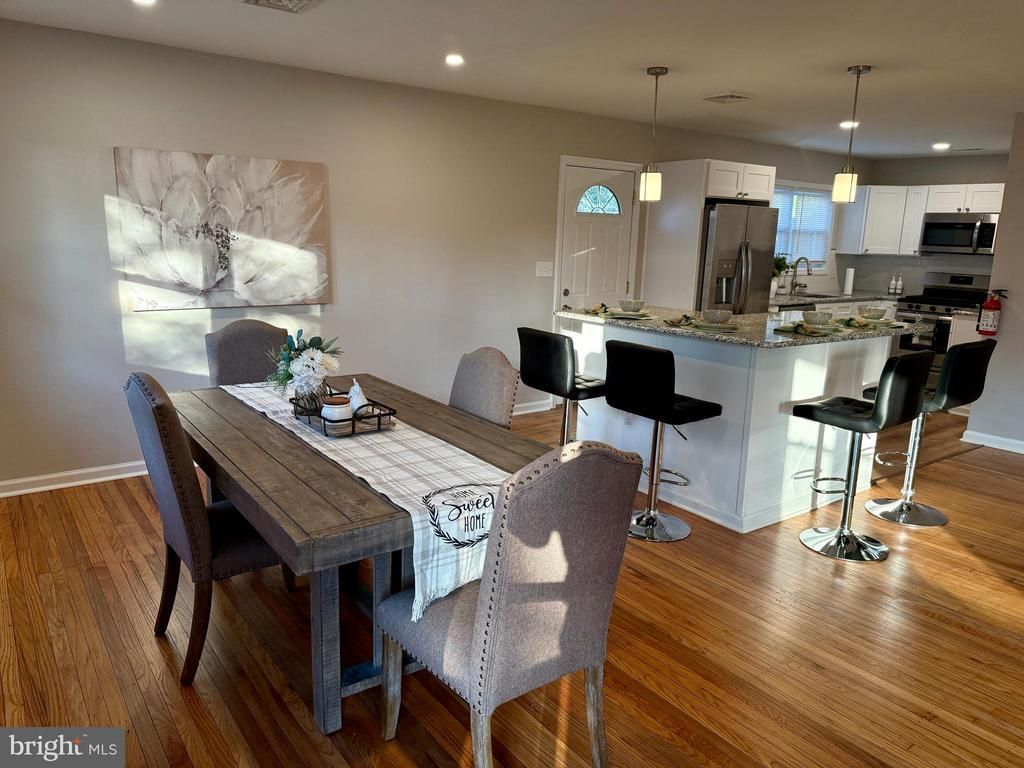 Stunning 3 bedroom, 2 bath rancher with a desirable open floor plan and beautifully refinished hardwood floors. The kitchen is the heart of the home, featuring white shaker cabinetry, granite countertops, stainless steel appliances, and a center island perfect for gatherings and everyday living. The spacious primary suite includes a walk-in closet and a sleek walk-in shower. The hall bath is tastefully updated with a newer vanity and a beautifully tiled tub/shower combination. Offering stylish finishes, thoughtful updates, and effortless one-level living, this move-in-ready home truly has it all. Seller is a licensed NJ salesperson.