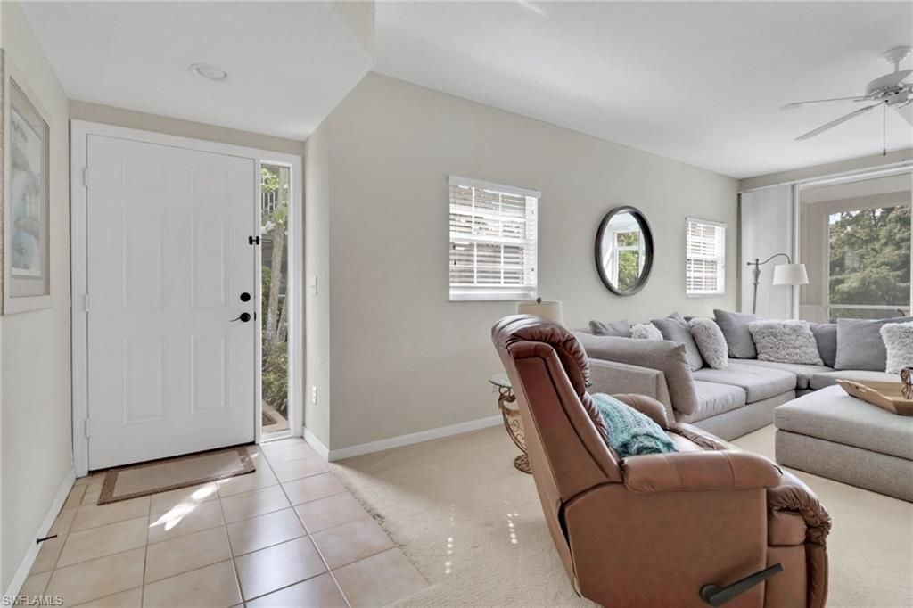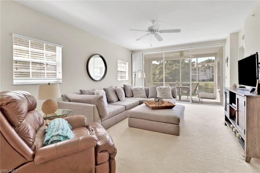 Welcome to Calusa Bay North! This light and bright first-floor lakefront villa offers the perfect blend of comfort, convenience, and Florida charm. Turnkey furnished and ready for immediate enjoyment, this spacious residence features 2 bedrooms plus a den and 2 full baths, with a thoughtfully designed layout ideal for both everyday living and entertaining. The open-concept living and dining area flows seamlessly to the screened lanai, where you can relax and enjoy tranquil lake views. The eat-in kitchen includes a breakfast bar and ample cabinet space, while large windows throughout fill the home with abundant natural light. You’ll appreciate the spacious bedrooms, carpet throughout, and plenty of room for guests. A single-car garage adds convenience and extra storage. Ideally located in the heart of North Naples, Calusa Bay North offers resort-style living just minutes from the area’s top dining, shopping, and white-sand beaches. Residents enjoy easy access to Mercato, Waterside Shops, and Vanderbilt Beach, along with nearby golf courses and everyday conveniences. The gated community features beautiful walking paths, a clubhouse, fitness center, tennis courts, and a sparkling resort-style pool—providing everything you need to embrace the Southwest Florida lifestyle. Calusa Bay North is a beautifully maintained, gated community in the heart of North Naples—close to world-class shopping, dining, and Naples’ famous white-sand beaches. Enjoy an array of resort-style amenities including two community pools (a main pool and the Cabana Pool), a fitness center, clubhouse, tennis courts, walking and bike paths, BBQ/picnic areas, fishing pier, and more. Whether you’re looking for a full-time residence or a seasonal retreat, this villa offers an exceptional opportunity to experience Naples living at its best.