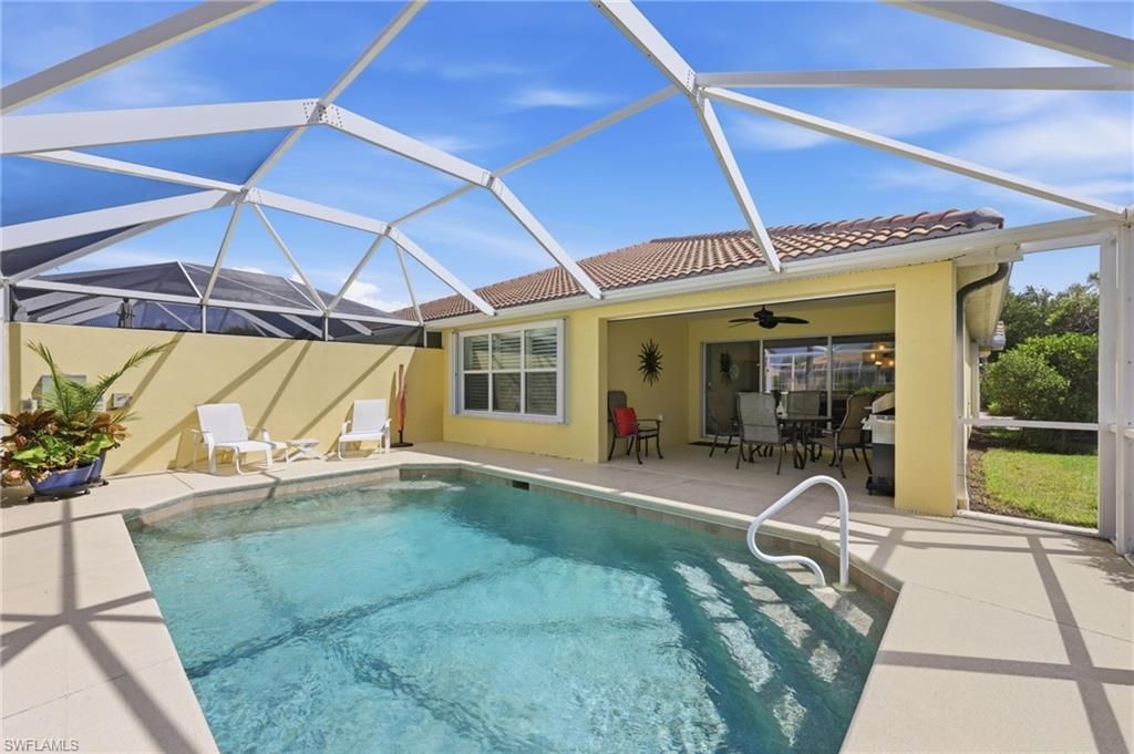 SEASONAL RENTAL WITH POOL AVAILABLE NOW! Enjoy the best of VeronaWalk in this fully FURNISHED Carrington model featuring a desirable southwest exposure with stunning sunset views over the water. This 3-bedroom, 2-bath home offers a bright and comfortable layout, perfect for next season. Beautiful outdoor space with a private screened lanai featuring a heated Pool and Peaceful lake view, ideal for enjoying sunny afternoons and evening sunsets. The covered outdoor seating area provides the perfect space for dining or unwinding in the shade. Inside, the home features a clean, updated kitchen with white cabinetry and stainless steel appliances, along with spacious living and dining areas designed for comfort and functionality. The primary suite and guest bedrooms are thoughtfully furnished, offering a welcoming and restful atmosphere. Residents of VeronaWalk enjoy an exceptional resort-style lifestyle including 24-hour guarded gate access, resort and lap pools, fitness center, tennis and pickleball courts, bocce, basketball, clubhouse, restaurant, cafe, post office, gas station, beauty salon, and miles of scenic walking and biking paths. Ideally located just minutes from the beaches and world-class dining of Naples and Marco Island.