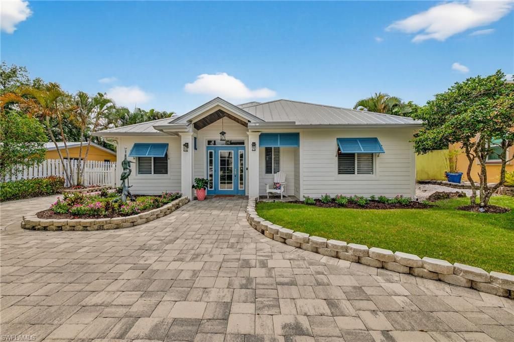 This charming coastal cottage offers an unbeatable location just moments from the beach and the world-class dining and shopping of 5th Avenue South. Embrace the quintessential Naples lifestyle—highly walkable and perfect for biking or golf cart cruising—right from your doorstep. Inside, the home showcases a fresh coastal contemporary design with thoughtful updates throughout, creating a light, inviting atmosphere. Step outside to your private backyard retreat, where a desirable southern exposure fills the pool area with sunshine all day. The outdoor space has been beautifully enhanced with all new landscaping, stylish new Polywood furniture, a new pool umbrella, and new pool lighting, all complementing the recently repainted exterior. Entertain with ease in the covered lanai and built-in outdoor kitchen, or enjoy the expansive side yard featuring a generous grassy dog run—ideal for pet lovers. The well-designed floor plan offers both a living room and a separate family room, a spacious primary suite, skylights for added natural light, and a large U-shaped kitchen that seamlessly connects the dining and family areas. Built with quality in mind, the home features durable cement siding and remained high and dry with no water intrusion during recent hurricanes—offering true peace of mind. Additional highlights include a circular driveway for ample front parking and a detached oversized one-car garage with convenient alley access. This is a rare opportunity to own an adorable, move-in-ready home in one of Naples’ most sought-after neighborhoods—don’t miss it.