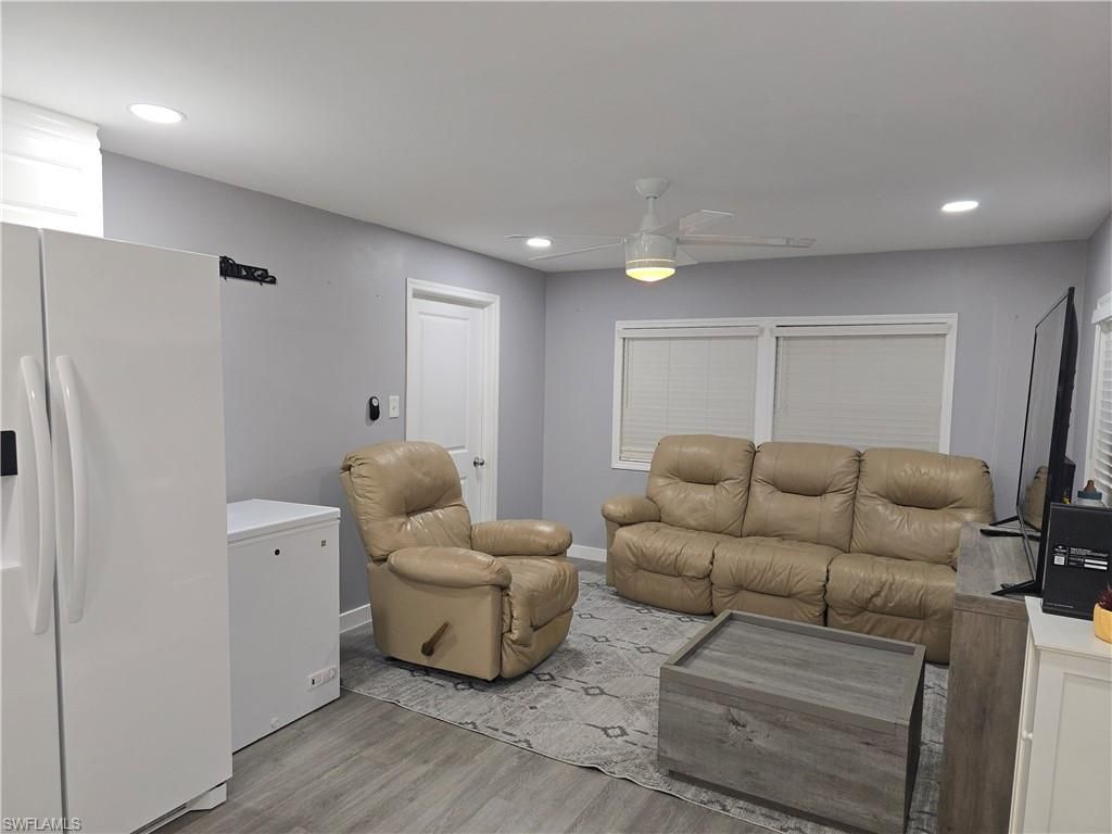 Spacious single-wide home with extended rooms. Side room was made into a bedroom. This 2-bedroom, 2-bathroom home features a bright, open great room. part of the carport was screened in to enjoy the outdoors. Newer kitchen and Bath. Many upgrades. 9/2025 mini splits ac. Located in Enchanting Acres Mobile Home Park a vibrant 55+ community with fantastic amenities, including a pool, shuffleboard, bocee ball, and a clubhouse. Conveniently close to restaurants, shopping, the Bayshore Arts District, pickleball courts, and Sugden Park.