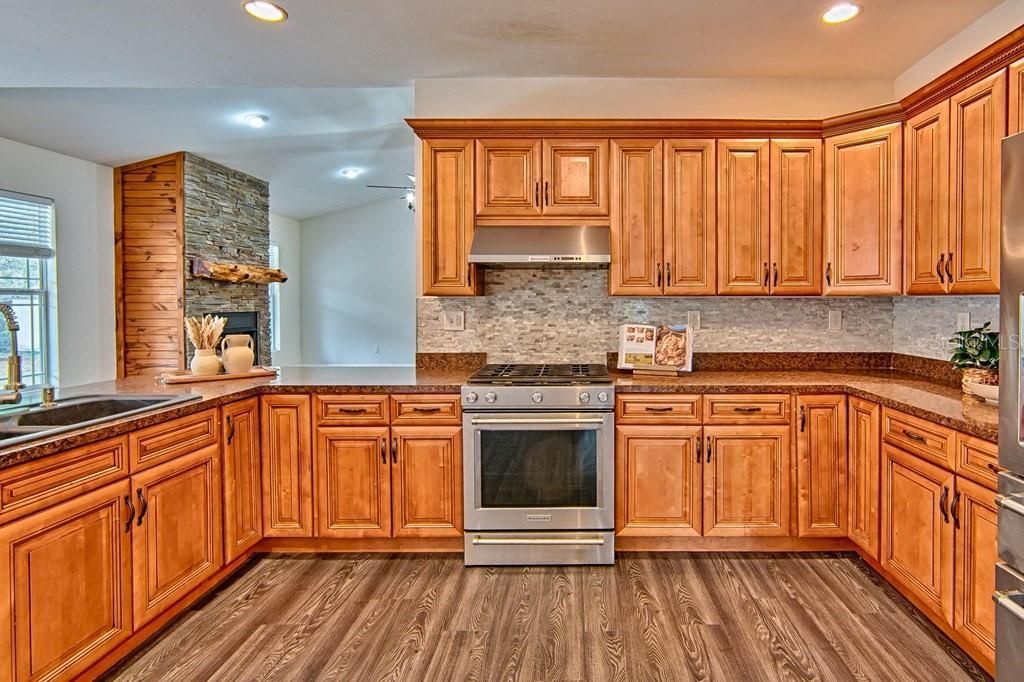 One or more photo(s) has been virtually staged. CHIEFLAND GOLF VIEW ~ This beautiful 4 bedroom, 2 bathroom exceptional home sits on a spacious 3-acre lot located across the street from the Chiefland Golf Course. Surrounded by trees, the property offers a private and peaceful setting while still providing plenty of open space to enjoy. Inside, the home features a large open living area with a spacious kitchen, dining, and living room that centers around a beautiful stone fireplace, creating a warm and inviting focal point. The home is filled with natural wood and earthy tones throughout, giving it a cozy, homey feel. The master bedroom has a tray ceiling, is generously sized and includes a separate area that would be perfect for a home office, sitting area, or nursery. The master bathroom features a walk-in shower, a classic clawfoot tub, and a walk-in closet, creating a relaxing and functional master suite. The home also features both large front and back porches, giving the homeowners the opportunity to customize the spaces to relax, unwind, and enjoy the beautiful outdoor surroundings and peaceful setting. Features include luxury vinyl plank flooring throughout, upgraded dual-pane vinyl windows, whole-house water filter and softener, and an on-demand gas hot water heater. In the back yard is a firepit and a good-sized shed for your workshop with covered storage for your lawn equipment or toys. This gorgeous property offers the perfect combination of space, privacy, and charm, just across the street from the golf course fairway, Owner financing is also available with significant down payment and terms acceptable to seller.